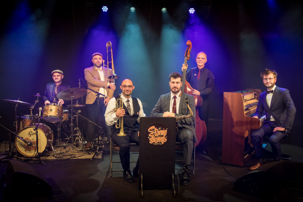 Doté d’une solide section rythmique et d’une section cuivre scintillante, Stomp Stomp mêle avec passion ses compositions originales aux trésors du swing, promettant une véritable explosion de rythmes et de mélodies qui invitent à la danse et à la fête.